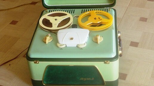 Хочу представить ранний магнитофон Яуза-5, который выпускался Московским электромеханическим заводом № 1 с 1960 года по 1965 год, имел две рабочие скорости движения ленты 9,75 см/сек и 19,05 см/сек, рассчитан был на магнитные ленты Тип 2 и Тип 6. Ранний выпуск магнитофона Яуза-5 навсегда запечатлен в фильме Л. Гайдая "Бриллиантовая рука" и неразрывно связан с образами С. Светличной и Ю. Никулина. С 1965 года по 1967 год магнитофон Яуза-5 выпускался в другом корпусе, имел индикатор на лампе 6Е1П, и был фактически переходным к следующей модели Яуза-6...
