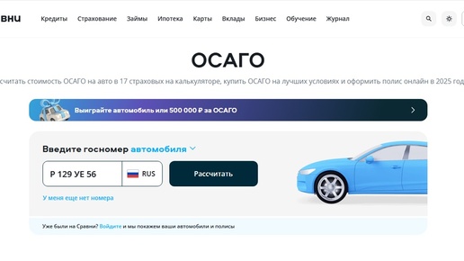 Процесс оформления Е-ОСАГО максимально прост и интуитивно понятен. Следуйте этим шагам: Для оформления полиса ОСАГО вам потребуются: *Важно: держите эти документы под рукой, чтобы быстро внести данные. На калькуляторе ОСАГО от Сравни.ру вам будет предложено заполнить форму, указав: Система автоматически сверит введенные данные с базами РСА, что гарантирует точность и исключает ошибки. После ввода всех данных агрегатор покажет вам список предложений от различных страховых компаний с указанием окончательной стоимости...