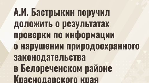 А.И. Бастрыкин поручил доложить о результатах проверки по информации о нарушении природоохранного законодательства в Белореченском районе