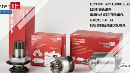 MasterKit это теперь и комплектующие стартеров и генераторов MasterKit Electro. Ассортимент комплектующие стартеров и генераторов MasteKit Electro насчитывает более 200 артикулов следующей продукции:  Регулятор напряжения генератора  Шкив генератора  Диодный мост генератора  Бендикс стартера  Реле втягивающее стартера Преимущества комплектующих MasterKit Electro:  совместимость со стартерами и генераторами других брендов и различных автомобилей  полная идентичность оригинальным изделиям ...