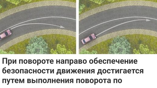 В данной статье разберём 2 вопроса экзаменационных билетов. Они очень похожи. В одном случае машина поворачивает направо, в другом билете поворачивает налево. Разберём особенности траекторий. Дело в том, что во время поворота на автомобиль действует центробежная сила. Взглянем на формулу. M - масса V - скорость R - радиус поворота Другими словами: центробежная сила заставляет ехать автомобиль по большой дуге. Увеличивается центробежная сила пропорционально квадрату скорости...