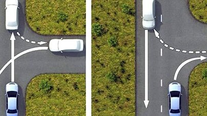 Всех приветствуем на нашем канале Мастер ПДД. Давайте с Вами разберем вопрос, который входит в экзаменационный билет. Вопрос не отличается сложностью, но все равно многие совершают ошибку в нем. Что бы избежать ошибки и дополнительных вопросов, мы с Вами его сегодня разберем. Способ разворота с использованием прилегающей территории справа, обеспечивающий безопасность движения, показан: 1.Т олько на левом рисунке. 2. Только на правом рисунке. 3. На обоих рисунках. Мы видим два варианта разворота на п Т-образном перекрестке...