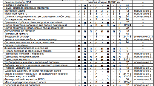 Таблица переодичности технического обслуживания Toyota Rav4 1994-2000 г.в