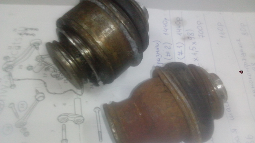 Перебирали подвеску свои ребята на нашем сервисе. Да-да, то самое чувство когда тебе делает машину чужой человек. Смирился я, тут хотя бы мастера свои, я их знаю, и надеюсь что перебирали они на совесть. В каком состоянии у меня задние поперечные рычаги я знал, но все-равно был немного удивлен. Итак подборка фоток старых рычагов. Пыльники на обоих рычагах полностью порваны, не смотря на это шаровая еще достаточно тугая, плотная, смазка еще сохранилась и шар не заржавел. Сайлентблоки уже немного уставшие, но еще могли бы спокойно поработать...