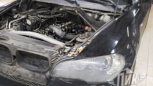 Автомобиль 2009 года выпуска. BMW X5 в кузове E70 с пробегом в 215 000 км приехал с жалобой на запах горелого масла. Мы предложили владельцу провести бесплатную диагностику и чем скорее, тем лучше, так как дальнейшая эксплуатация автомобиля может быть опасна. Ведь если пахнет горелым маслом, значит моторное масло откуда-то сочится и попадает на раскаленные узлы двигателя. Как делалась диагностика течи масла: