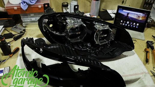 Произвели окраску масок фар в черный глянец. Разобрали фары аккуратно по заводской кромке, все хромовые детали очищены химическим путем Больше других проектов у нас на сайте