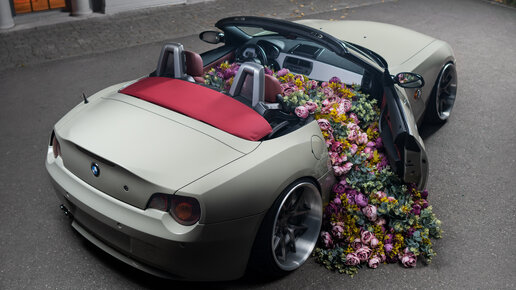 Фотосессия автомобиля BMW Z4 с цветами