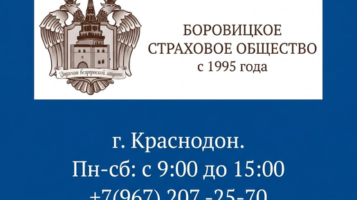 Боровицкое Краснодон.+7(967)207 25-70. Страховая компания