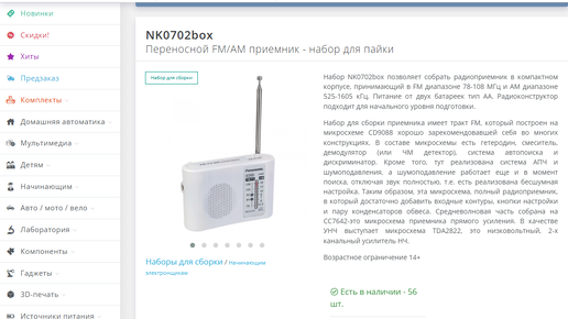 В очередной раз спасибо читателям. В статье ТА7642 я писал, что жаль не было наборов с ней для самостоятельной сборки. Оказывается я ошибался - они были и есть до сих пор. Мне кажется, что это дорогова, но некоторые детали можно использовать повторно, например, КПЕ. Схема интересна тем, что тракты АМ и ЧМ полностью раздельные, т.е. полностью раздельные :)) - на разных микросхемах. Инструкцию можно скачать на той же странице. В тракте ФМ использована микросхема CD9088. Это супергетеродин с промежуточной...