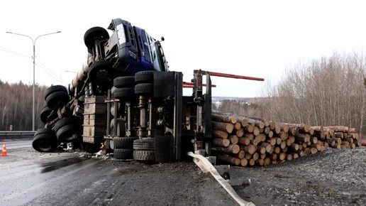 Лесовоз «Вольво» перевернулся на трассе в Братске