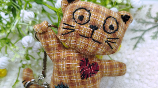 Забавный котик. Брелок для ключей, подвеска в автомобиль, подвеска на сумку. Мастер-класс.