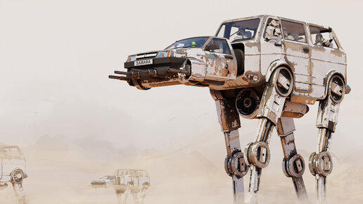 Что будет, если совместить технологии вселенной Star Wars и СССР? Что получится, можно увидеть на иллюстрациях под названием «вездеходный бронированный транспорт AT-AT на базе ВАЗ-2109 и РАФ-2203». Первый эскиз данной работы выполнил художник Den Pakowacz из Монголии. Эскиз был одним из набросков автора к «Маршу роботов», который проходил в марте 2017 году. В дальнейшем Самарский 3D-художник Илья Дядюра выполнил детальный рендеринг данной идеи, создав фантастические замечательные иллюстрации. Историческая...