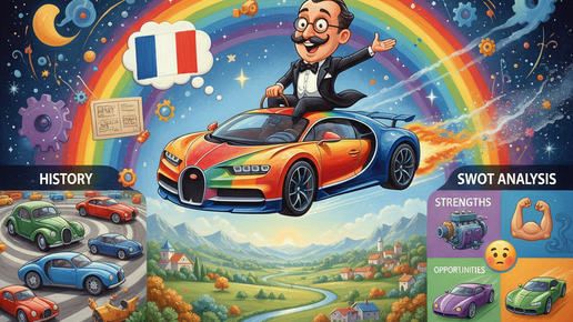 Bugatti Automobiles: история, бизнес-модель и SWOT-анализ. Создано ИИ Bugatti Automobiles S.A.S. – ранее итальянская, сейчас французская автомобилестроительная компания, специализирующаяся на выпуске легковых автомобилей класса люкс под маркой Bugatti. Бизнес-модель Bugatti Automobiles основана на создании эксклюзивных, высокопроизводительных гиперкаров, предназначенных для элитной клиентуры. Поддерживая ограниченные тиражи, компания создает ощущение дефицита и желанности, привлекая ультрасостоятельных клиентов, стремящихся к исключительной роскоши и символам статуса...