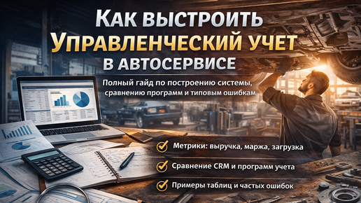 Введение. Управленческий учёт – это система внутренней финансовой и операционной аналитики, позволяющая владельцу автосервиса видеть реальную картину бизнеса. В отличие от бухгалтерского учёта, который ведётся для налоговой и внешних пользователей, управленческий учёт нацелен на нужды внутреннего управления[1][2]. Правильно настроенный управленческий учёт помогает понимать, откуда берётся прибыль, как она формируется и куда утекает, даёт возможность влиять на результаты и принимать обоснованные решения[3][4]...