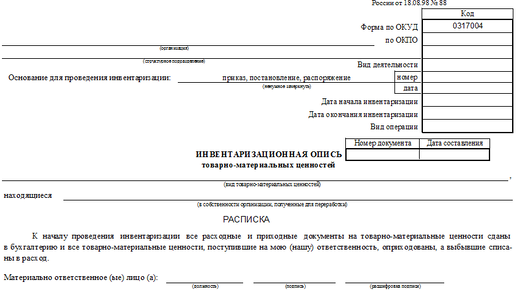 Унифицированная форма № ИНВ-3 - бланк и образец