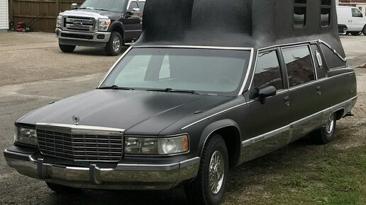 Полноразмерный седан Cadillac Brougham часто становится основой для создания катафалков. Рецепт изготовления подобных автомобилей довольно прост: колесную базу растягивают, освобождая место под специальный отсек для усопшего. Автомобиль в обязательном порядке окрашивают в черный. Так свою жизнь начинал и этот экземпляр. Неизвестно, сколько он трудился на благо потустороннего мира, но его ждала совершенно необычная судьба для подобного типа транспортных средств — какой-то безумец выкупил его у ритуальной компании и переоборудовал в...