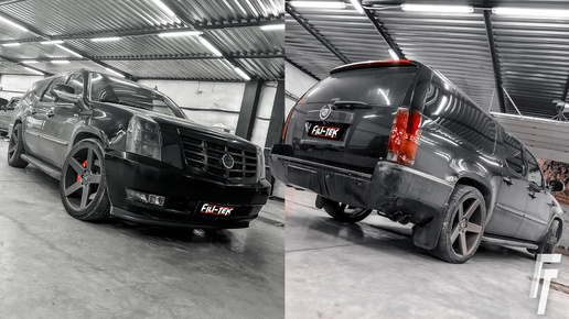 К нам приехал представитель уже ставшей классикой генерации — Cadillac Escalade 2010 года. У этих машин с завода был скромный подход к выхлопу: трубы аккуратно выведены под бампер, никаких насадок не предусмотрено. Владелец захотел исправить эту «недоработку» в лучших традициях американского автопрома: «Хочу, чтобы с боков, из-под порогов, выходили две здоровенные чёрные трубы, как на старых масл-карах». Задача была не в улучшении характеристик, а в стилистическом рестайлинге — добавить машине того самого брутального шарма, который был в её ДНК, но почему-то спрятан инженерами...