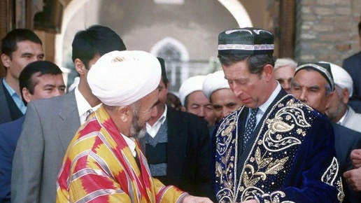 Принц Чарльз посетил медресе Барак-хам в Ташкенте. Муфтий Мухтар Абдуллаев преподнёс принцу Чарльзу традиционное свадебное платье из синего бархата, богато расшитое золотом, тюбитейку и шелковый пояс-шарф...