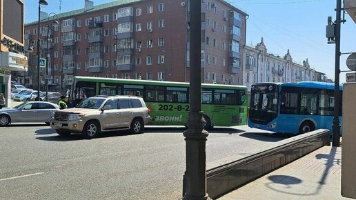 Автобус врезался в джип и перегородил проезд в центре Владивостока