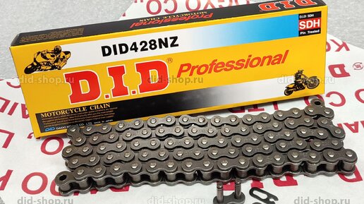 Сегодня на обзоре лучшая бессальниковая цепь 428 размера - DID 428 NZ! 428 NZ - это усиленная цепь с цельной кованой втулкой и SDH покрытием. SDH - это нанесение слоя карбида хрома на штифт, которое делает его устойчивым к истиранию от грязи и песка. Такие цепи ходят в 1,5 раза дольше обычных.