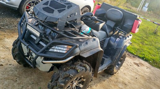 Всем привет! Недавно продал Stels Leopard 600 и не собирался что-то в этом году покупать. Но так сошлись звезды, что купил у друга CF Moto X8 в очень жирном виде и честным пробегом 3100 км. Кто в теме, тот понимает, что при таком пробеге уже можно ушатать и движок, и вариатор, и вообще всю подвеску. Посматривал объявления, но там такой шлак... Причем ценник 550-700 тыс.руб. Поэтому покупка знакомого квадроцикла, в хорошем состоянии может затянуться очень надолго. И за дешево никто не продаст. Как видно, комплектация самая топовая...