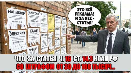 Пришел штраф или завели дело по ч. 16 ст. 14.3 КоАП РФ? Эта статья грозит любому, даже самому мелкому бизнесу! Ногтевики, услуги, общепит - мотайте на ус! Итак, вы открыли почтовый ящик, а там «письмо счастья» от Роскомнадзора, где фигурируют страшные цифры: часть 16 статьи 14.3 КоАП РФ. Поздравляю, вы попали в клуб тех, кого поймали на нарушении правил маркировки интернет-рекламы. Если говорить проще - это значит, что в отношении вас заведено административное дело за отсутствие специального идентификатора рекламы (токена erid) на публикации...