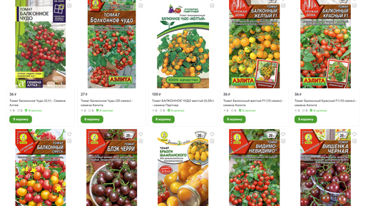 Какие сорта и каких производителей покупаете вы? Мы выбрали самые продаваемые у нас сорта томатов черри Семена томатов (помидор) Черри на сайте Огородник.ру Черри — это разновидность томатов с небольшими плодами. Они культивируются с начала 19 века и пользуются популярностью благодаря своему вкусу и декоративности. Разные источники приписывают происхождение данного сорта Перу или Чили. Сорта черри бывают разными: совсем маленькие с горошину, а некоторые достигают размера мяча для пинг-понга. Также данный сорт различается по форме, от идеально круглой до немного вытянутой...