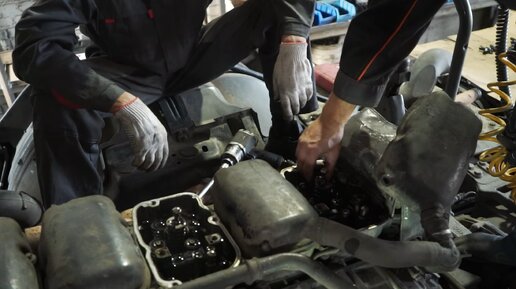 Приветствуем, друзья! Мы продолжаем по очереди проверять версии, по какой причине мог пойти черный дым из выхлопной трубы тягача, да ещё так, что хозяин вынужден был приехать к нам на эвакуаторе. Грешили на актуаторы, но после проверки выяснили, что дело не в них. Приступаем к следующему этапу поисков: поднимем наружу коллектора, и уже будем смотреть, из какого из цилиндров вырывается черный дым. Найдем, и там уже будем изучать: смотреть компрессию, форсунки и прочее. Открутили клапанные крышки...