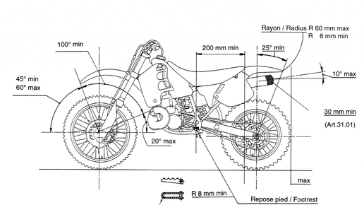 Чертеж кроссового мотоцикла 90-х годов с указанием специальных технических требований, регламентированных производителям FIM (для допуска техники к участию в соревнованиях).Благодаря столь мощной технологической...