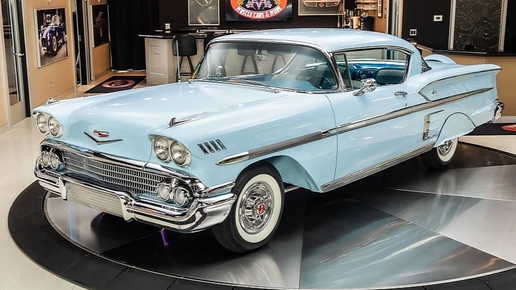 Этот автомобиль не просто привлекает взгляды. Его внешний вид вызывает восхищение у всех. Внутри скрывается мощный мотор. История этой машины удивляет даже знатоков. Оцените, как классика может быть актуальной сегодня. Голубой кузов, вытянутые линии и низкая посадка — этот Chevrolet Impala 1958 года невозможно не заметить. Машина словно создана для того, чтобы быть в центре внимания. Ее блестящий лак, глубокий хром и внушительный V8 под капотом делают автомобиль настоящей звездой любого пространства, где бы он ни появился...