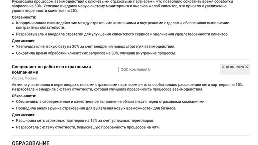 Пример резюме менеджера по работе со страховыми компаниями 2025 - как составить