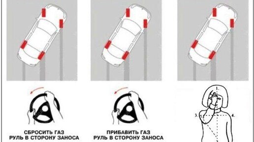 1.Что делать при заносе переднеприводного авто . Сразу после срыва авто действуем очень просто: выворачиваем руль в сторону заноса (туда, куда уходит задняя часть авто). Если зад машины понесло влево — выворачиваем руль влево. И наоборот. Обычно такие действия делаются автоматически и рефлективно. И это правильная реакция. Рефлекторная попытка выровнять авто позволит правильно начать действовать и даст время на обдумывание дальнейших шагов. После того, как автомобиль начнет выходить из заноса, нужно выровнять передние колеса в изначальное положение...