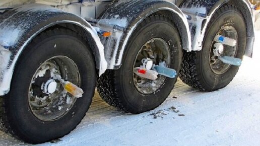 Зачем дальнобойщики цепляют пластиковые бутылки на колеса?!