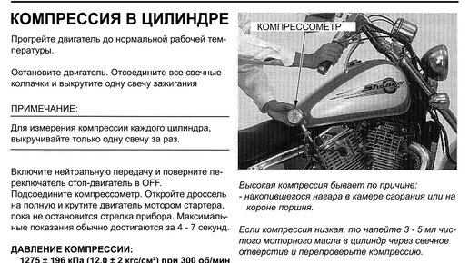 Инструкция к мотоциклу. Измерение Компрессии в цилиндре