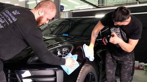 Но обратной стороной медали является тот факт, что чёрный цвет самый капризный в эксплуатации, и все недочёты видны невооружённым глазом. Особенно это заметно в солнечную погоду! Porsche Macan полностью отполирован до заводского блеска, плюс дополнительно был покрыт керамикой, что надолго обеспечит зеркальную поверхность...