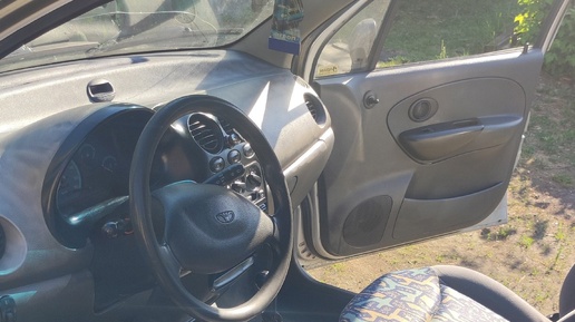 Daewoo Matiz 2003 года выпуска. Объем двигателя 0.8 литра. Пробег 205.000. Реальный пробег двигателя 80 000. Менялся летом 2023 г. Коробка передач механика 5 ступеней. Гидроусилитель руля, кондиционер (надо заправить), стеклоподъёмники только перед. Тонировка "Американка" только зад...