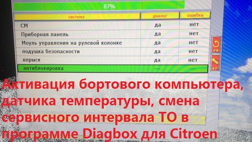 Активация бортового компьютера, датчика температуры, смена сервисного интервала ТО в программе Diagbox для Citroen Berlingo