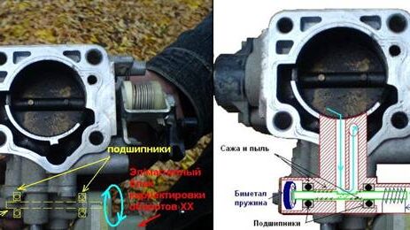 неровные холостые обороты. Причины: клапан холостого хода не свободно вращается на подшипниках, поэтому ЭБУ либо не может его позиционировать с нужной точностью, либо вообще не может установить клапан в нужную позицию. Нужно: крестовая и шлицевая отвертки, головка «на 14», пассатижи, банка аэрозольного карбклинера, герметик, два часа времени. 1. Снимаем вакуумные трубки с БДЗ.