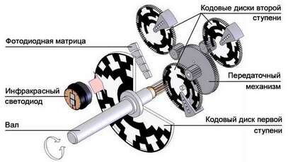 Энкодеры применяются для определения угла поворота вала. Энкодер — это своего рода генератор импульсов оптических или магнитных (датчик Холла). Энкодеры бывают двух типов: 1) Абсолютный Энкодер возвращает своё абсолютное положение после остановки и отключения питания станка ЧПУ. 2) Инкрементный Энкодер выдаёт импульсы, означающие изменение его положения. Начинает отсчет поворотов с нуля после остановки и отключения питания. Датчик Холла относится к инкрементным энкодерам...