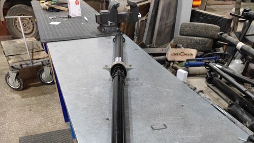 Из-за времени и приличного пробега демпфер подвесного подшипника растрескался и порвался. Крестовина к этому моменту тоже вышла из строя. С клиентом согласовали замену опоры и крестовины, балансировку.