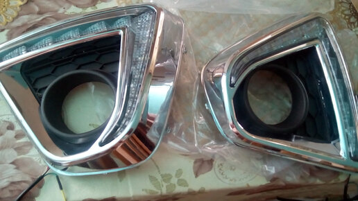 Перед покупкой автомобиля, я уже заранее заказал на Али экспресс накладки ПТФ со встроенными ДХО и после их получения и проверки на работоспособность, решил до оснастить их динамическими поворотниками. Вот так выглядела их начинка внутри. Диоды двухцветные, но имели всего два контакта, т.е. на кристалле включены встречно-параллельно. Поэтому в нашей схеме он будет лишним, и блок управления был сразу удален. Так как диоды белого цвета включены последовательно, то 12-ти вольт для их работы...