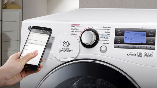 Стиральная машина LG с функцией Smart Diagnosis LG Smart Diagnosis – технология, которая позволяет самостоятельно диагностировать любую неисправность Вашей стиральной машины. Программа определяет множество видов поломок и отображает полученные данные на экране смартфоне...
