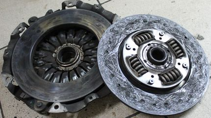 Многие из читающих это, наверное застали, как переклепывали тормозные накладки или переклеивали их. Но кроме тормозов, в автомобиле есть еще одна деталь с фрикционными накладками - диск сцепления. И его тоже можно переклепать. Я расскажу примерную технологию в этом посте. Актуально это все, конечно же, только для МКПП, хотя, с нынешними ценами, будет очень актуально и для VAG, с его роботом DSG. Примерно так выглядит изношенное сцепление. Фрикционный диск ровный, без бороздок и, почти сточен, до металлического основания...