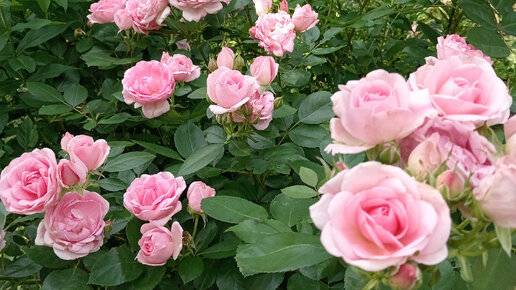 Здравствуйте друзья! Здравствуйте гости канала! Кустовая, канадская роза, высота куста 150 см, от производителя. Каждую весну укорачиваю их до 1 метра, иначе куст получается раскидистым и мешает другим посадкам. Побеги гибкие, дугообразные. «Прайри Джой» находится в глубине сада, тень. С одной стороны, для розового куста такое расположение нежелательно. С другой стороны, не выгорают нежные розовые краски. По описанию производителя, ширина куста этого сорта должна быть около 125 см. Но из-за теневого расположения куст в моём саду не разрастается...
