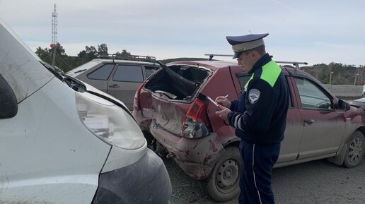 Водитель «Пежо Боксер» ехал со стороны Тюмени в направлении Екатеринбурга. Он не рассчитал скорость и не справился с управлением, после чего врезался в стоявший впереди «Рено Сандеро». От удара «Рено» отбросило на «Шкоду Суперб», а та, в свою очередь, столкнулась с «Киа Рио», которая стояла впереди и ждала, когда повернёт другой автомобиль...