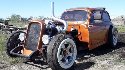 Противоречивые чувства возникли у меня, после того как увидел эту машину. Вроде, думаю, прикольно, парни здорово постарались, переделывая старый «Горбатый» ЗАЗ-965 в подобие американских хот-родов, но с другой стороны загублен «распилом» очередной редкий Зазик, таких ведь единицы остались. Но узнав историю этой машины поближе, понял что в данном случае это был неплохой вариант для «Запорожца» сохраниться хоть в каком-то виде. Начиналось всё с кузова, десятки лет простоявшего на задворках под открытым небом русской глубинки...
