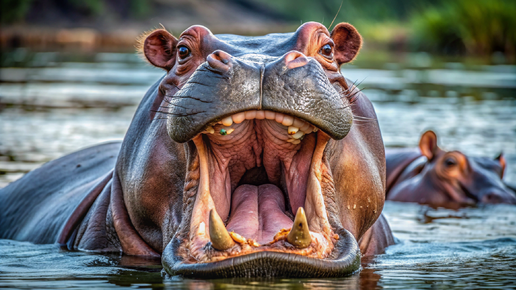Знаете, что общего между танком и этим африканским гигантом? Оба весят под три тонны и способны развивать скорость до 30 км/ч! Только в отличие от бронированной машины, бегемот куда опаснее — ежегодно эти "речные лошадки" уносят больше человеческих жизней, чем львы и крокодилы вместе взятые. "Представьте себе ситуацию: вы, довольные жизнью, фотографируете живописный африканский закат на берегу реки. И тут из воды появляется она — массивная туша гиппопотама..." Многие в этот момент подумают: "Ну, успею убежать, они же такие неповоротливые!" И знаете что? Это будет последняя ошибка в их жизни...
