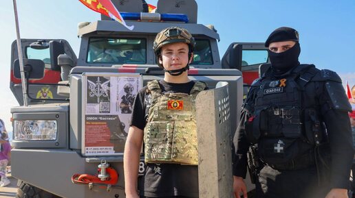 🇷🇺 Очередь юных петербуржцев выстроилась к бронеавтомобилю ОМОН «Бастион» и джипу вневедомственной охраны Росгвардии: в парке 300-летия