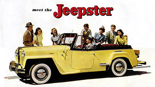 Продолжение и дополнение к статье о первых гражданских моделях Jeep Промышленный дизайнер Брукс Стивенс, разработавший линейку автомобилей Willys Jeep, представлял модель Jeepster как спортивный автомобиль для ветеранов Второй мировой войны. Капиталовложения в разработку модели были незначительными. Штамповка кузова была простой и требовала мало сложной оснастки. Брезентовый верх и боковые шторки обеспечивали защиту от непогоды. С преимуществом в весе, которое по сравнению с моделью Station Wagon составляло 225 кг, можно было ожидать, что Jeepster будет ехать бодрее чем универсал...