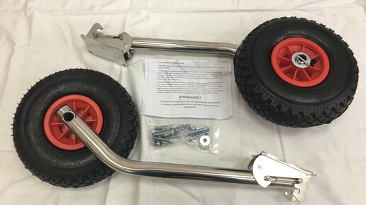 Быстросъемная модель транцевых колес очень удобна тем, что для их установки на берегу совсем не требуется много времени, они быстро отщелкиваются от фланца и их можно оставить на берегу или закинуть в лодку. Благодаря дополнительному пазу на держателе, колеса можно устанавливать в транспортировочное, верхнее положение.
